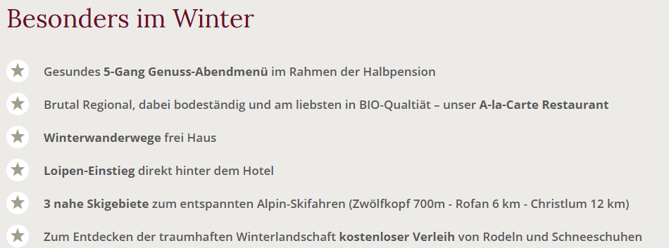 Genießen Sie herrlich entspannte Tage, viele liebevolle Aufmerksamkeiten und das gewisse „Mehr“ mit unseren attraktiven Inklusivleistungen. Ein Mehr an Service, an Komfort und natürlich an Entspannung.
